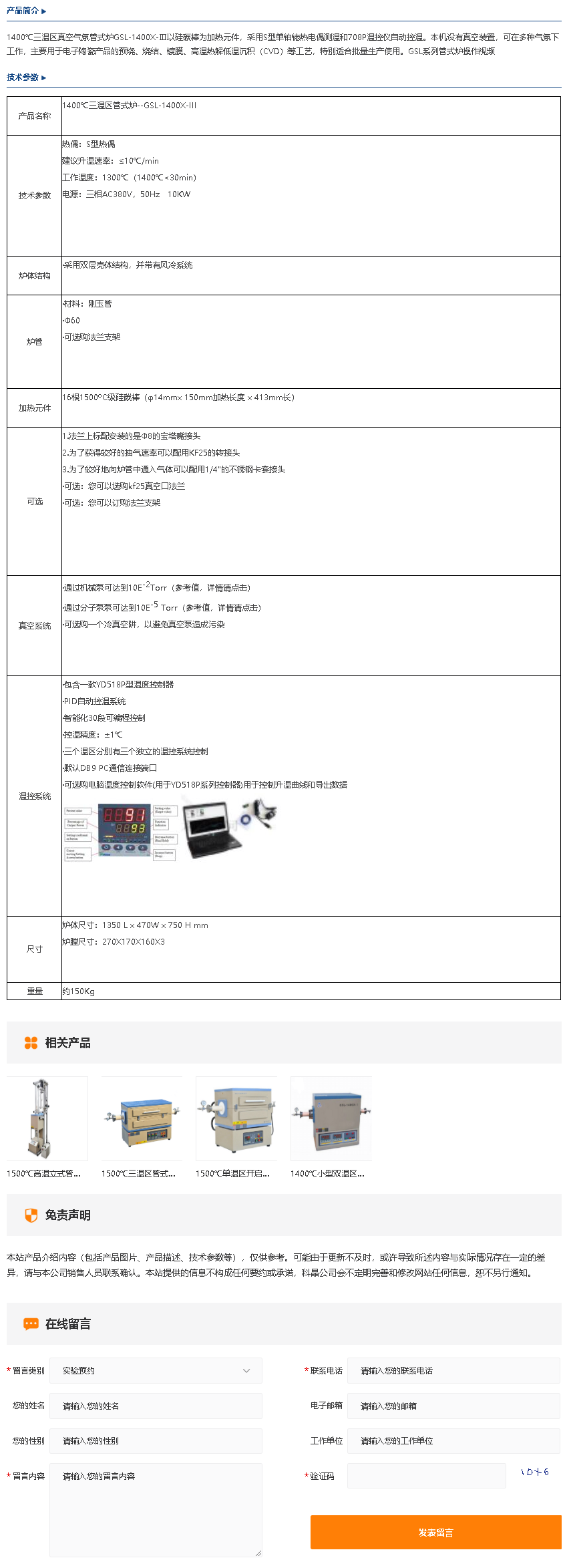 1400℃小型双温区开启式管式炉GSL-1400X-II