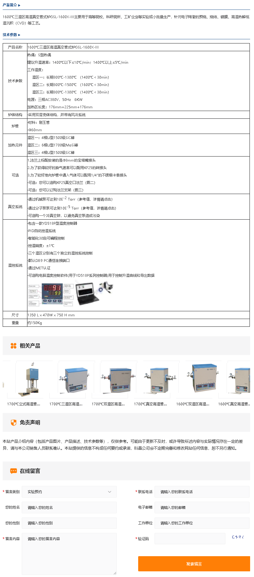 1600℃三温区高温真空管式炉GSL-1600X-III