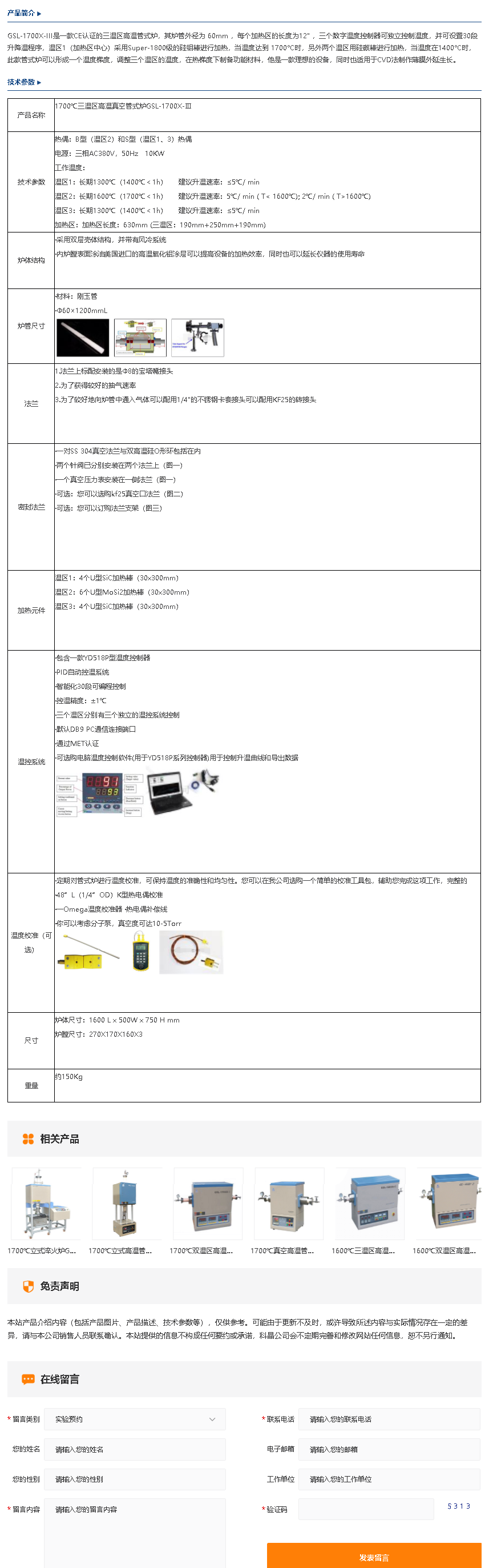 1700℃三温区高温真空管式炉GSL-1700X-Ⅲ