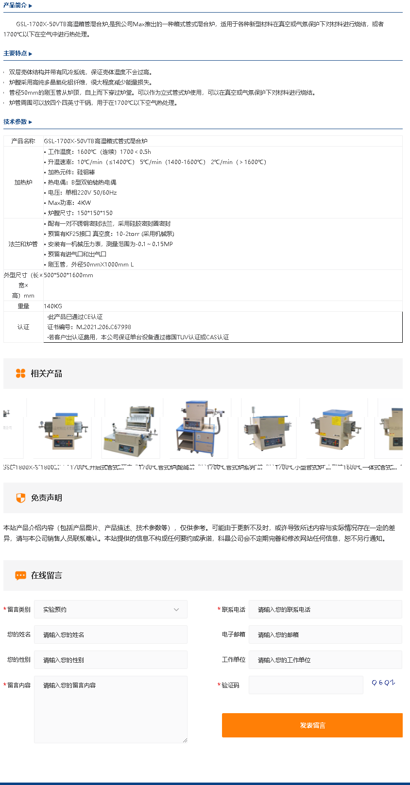 GSL-1700X-50VTB 高温箱式管式混合炉