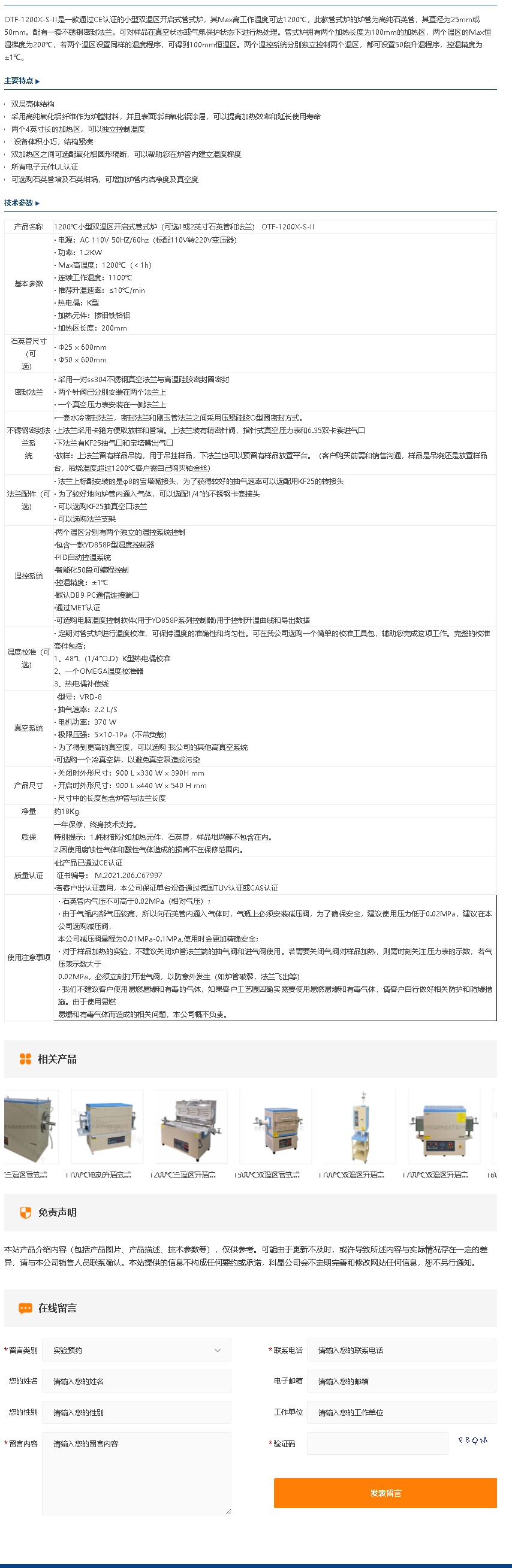 1200℃小型双温区开启式管式炉(可选1或2英寸石英管和法兰) OTF-1200X-S-II