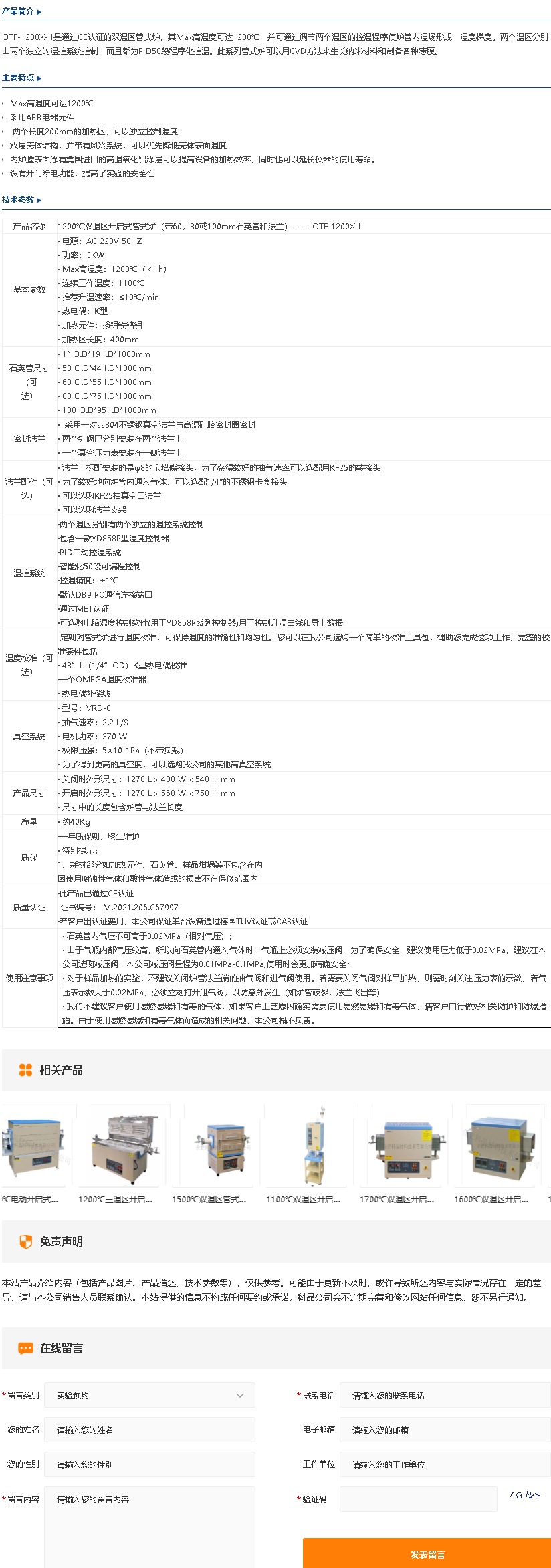 1200℃双温区开启式管式炉(带60,80或100mm石英管和法兰)—OTF-1200X-II