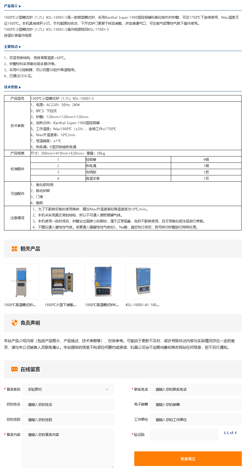 KSL-1800X-A1 1800℃高温箱式炉(3.4L)