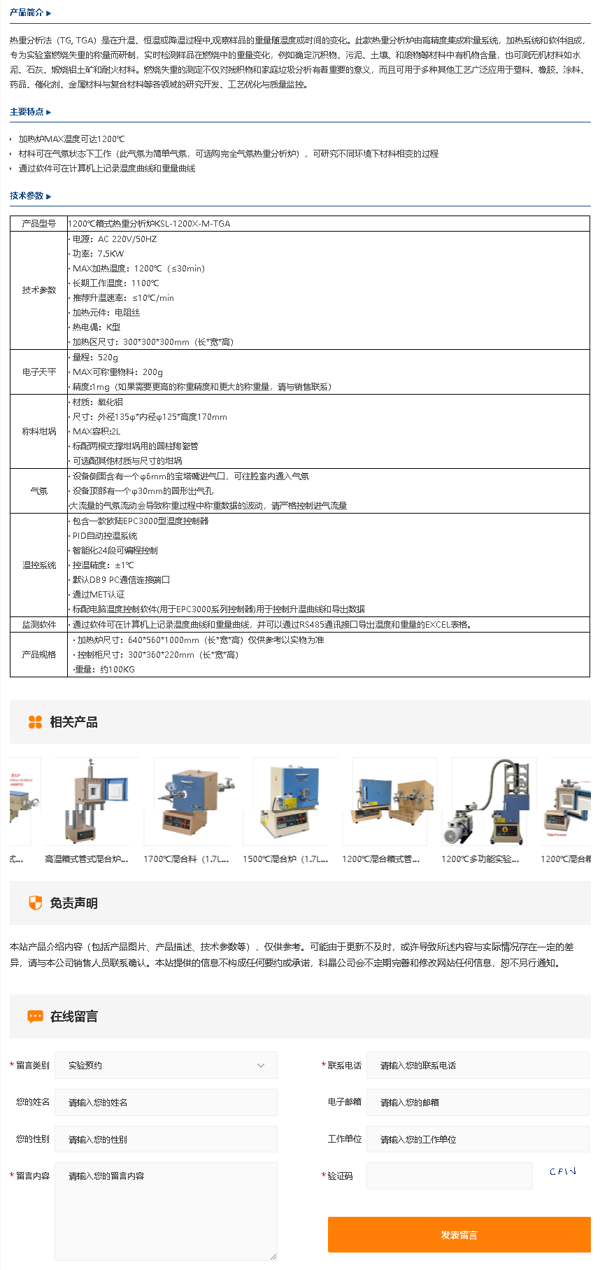 1200℃箱式热重分析炉KSL-1200X-M-TGA