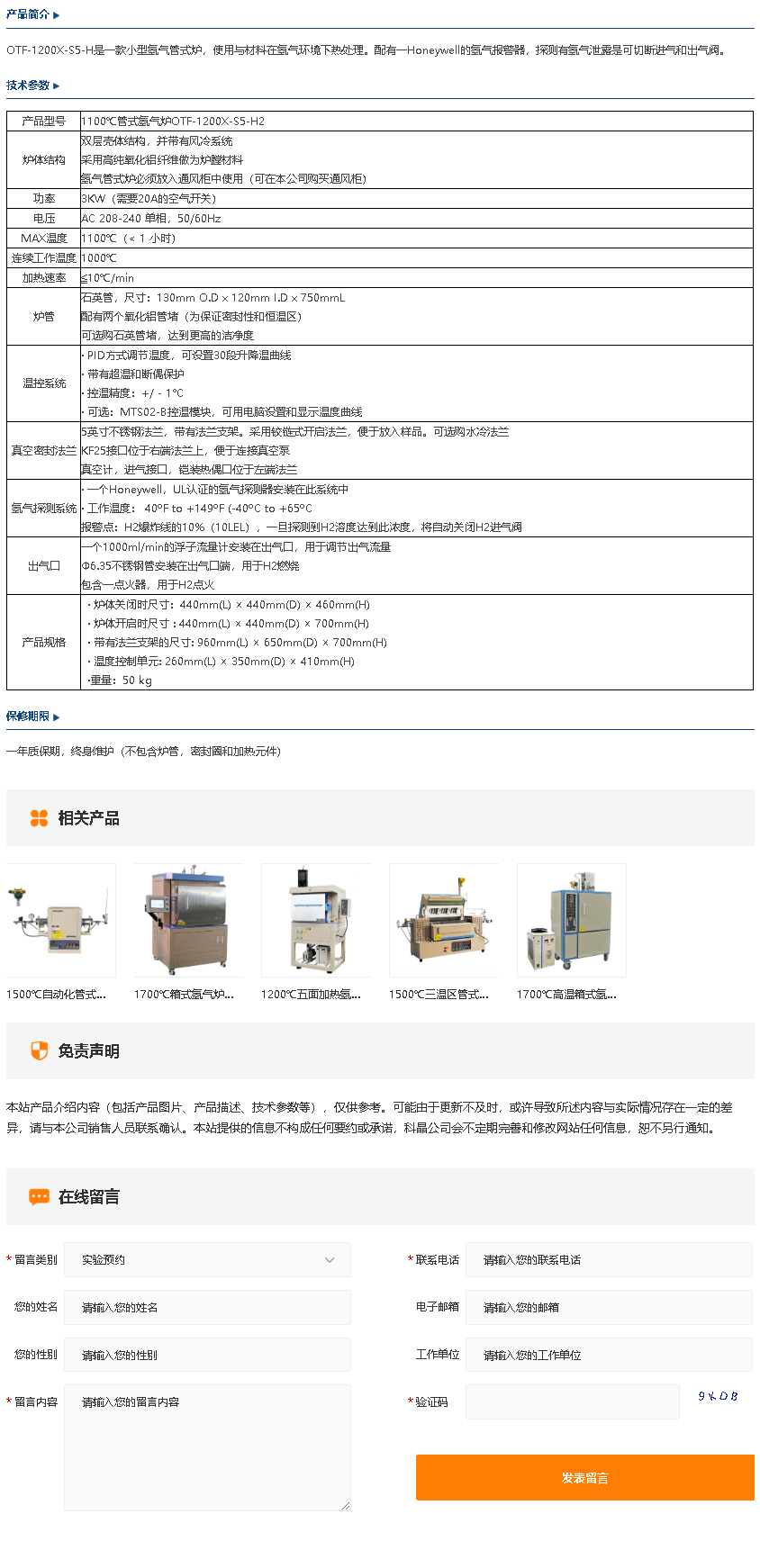 1100℃管式氢气炉OTF-1200X-S5-H2