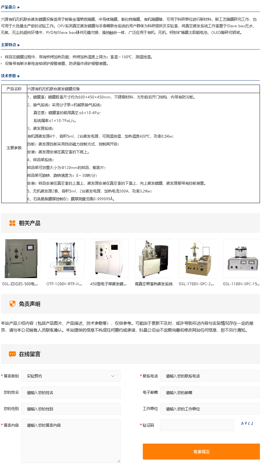 六源有机无机联合蒸发镀膜设备