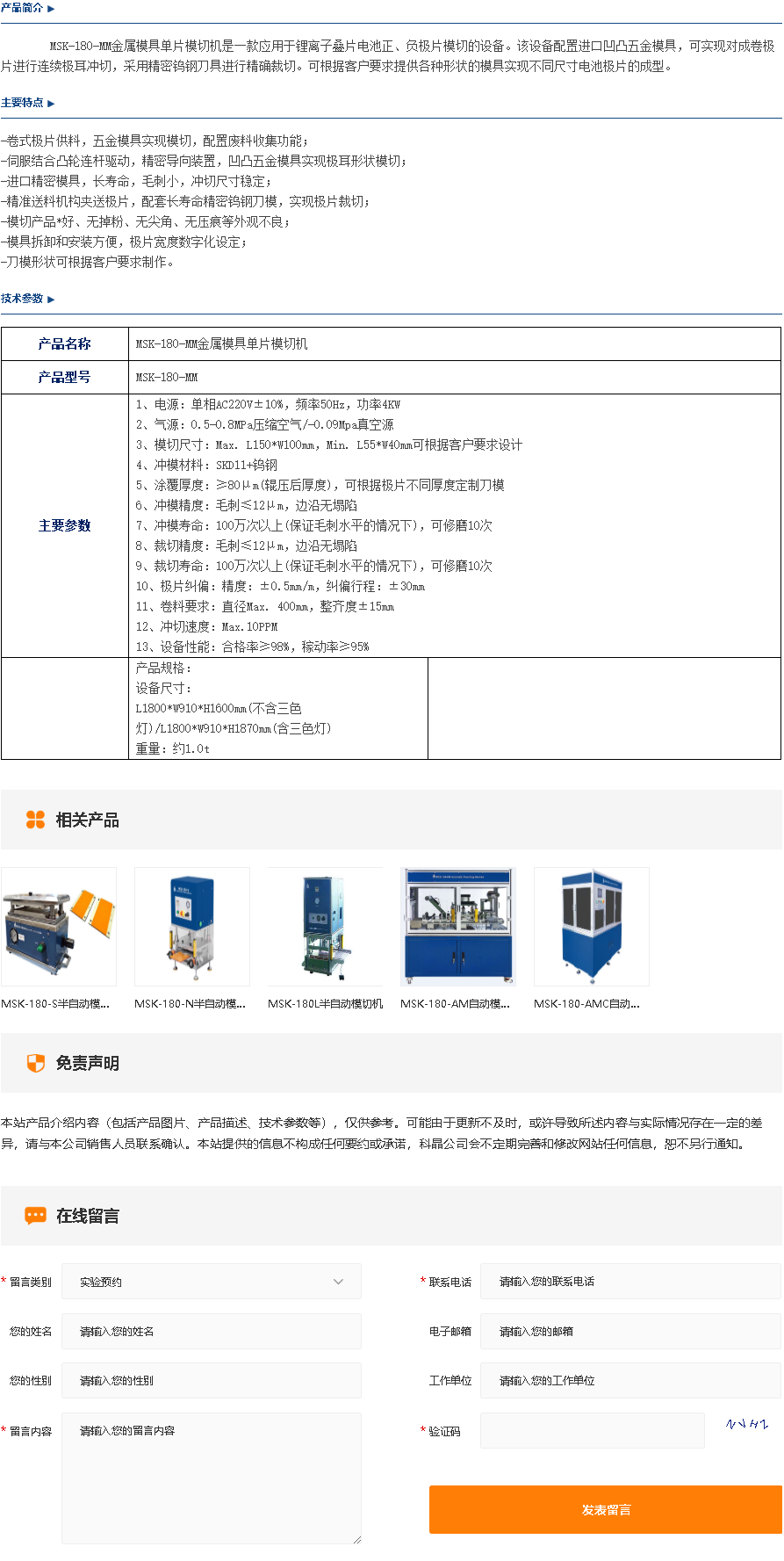 MSK-180-MM金属模具单片模切机