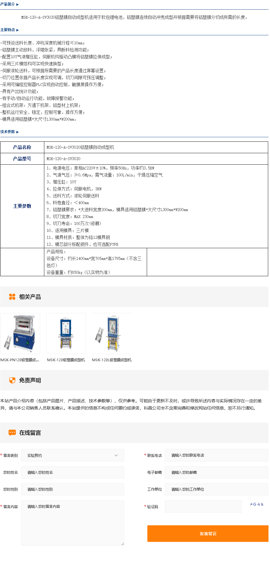 MSK-120-A-SV3020铝塑膜自动成型机
