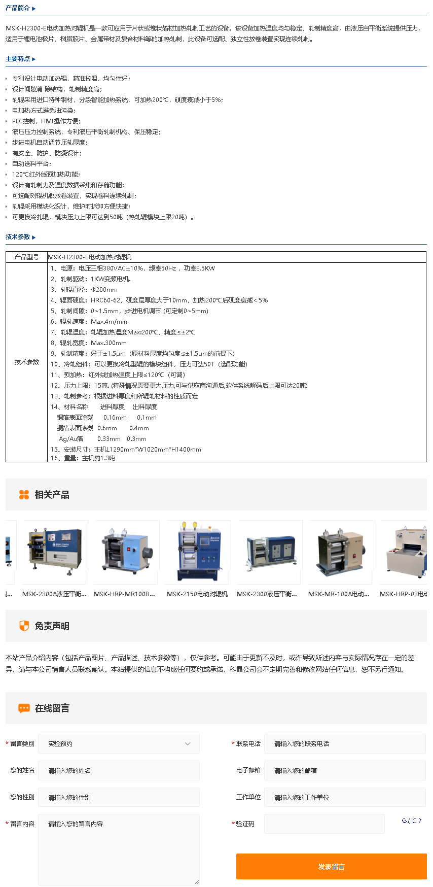 MSK-H2300-E电动加热对辊机
