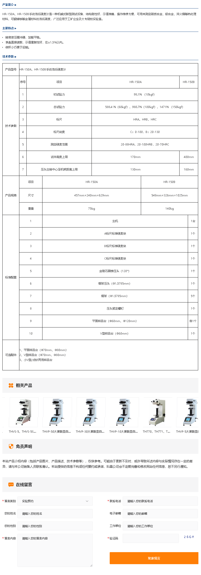 HR-150A、HR-150B手动洛氏硬度计