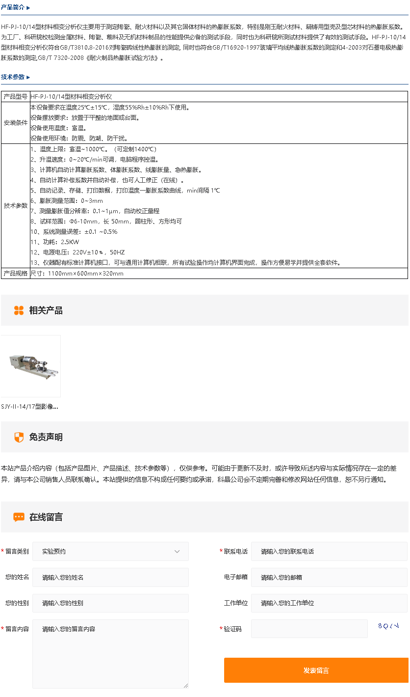 HF-PJ-10,14型材料相变分析仪