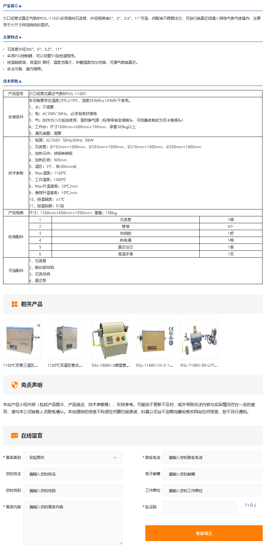 GSL-1100X 大口径管式真空气氛炉