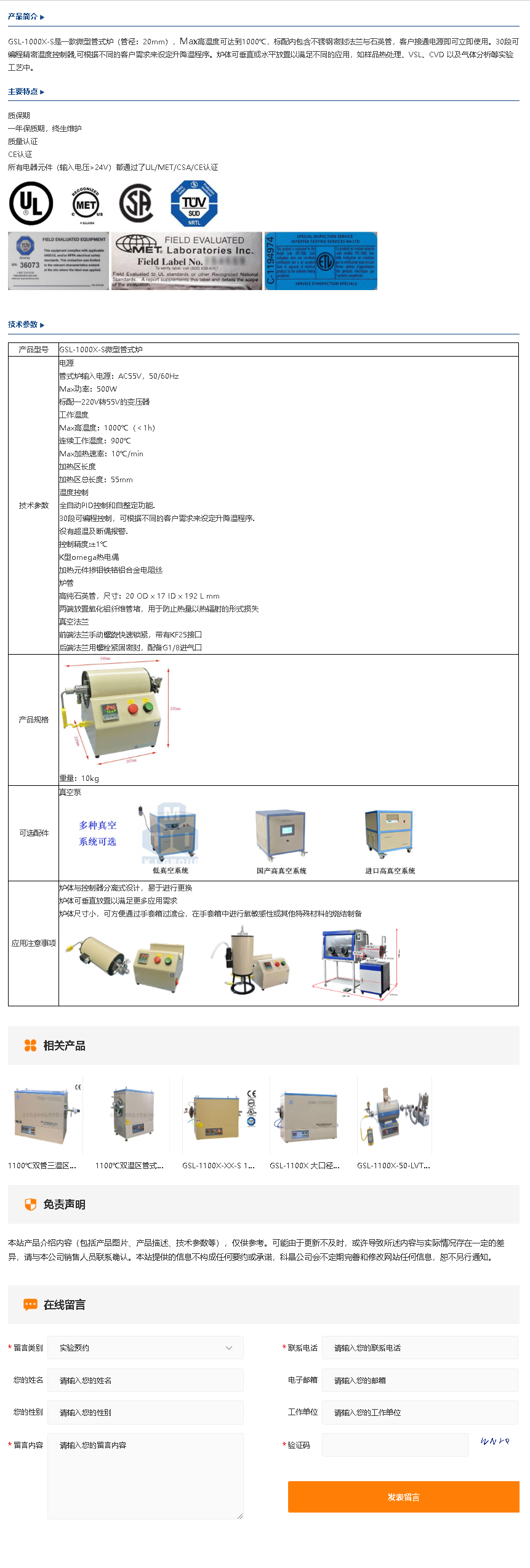 GSL-1000X-S微型管式炉