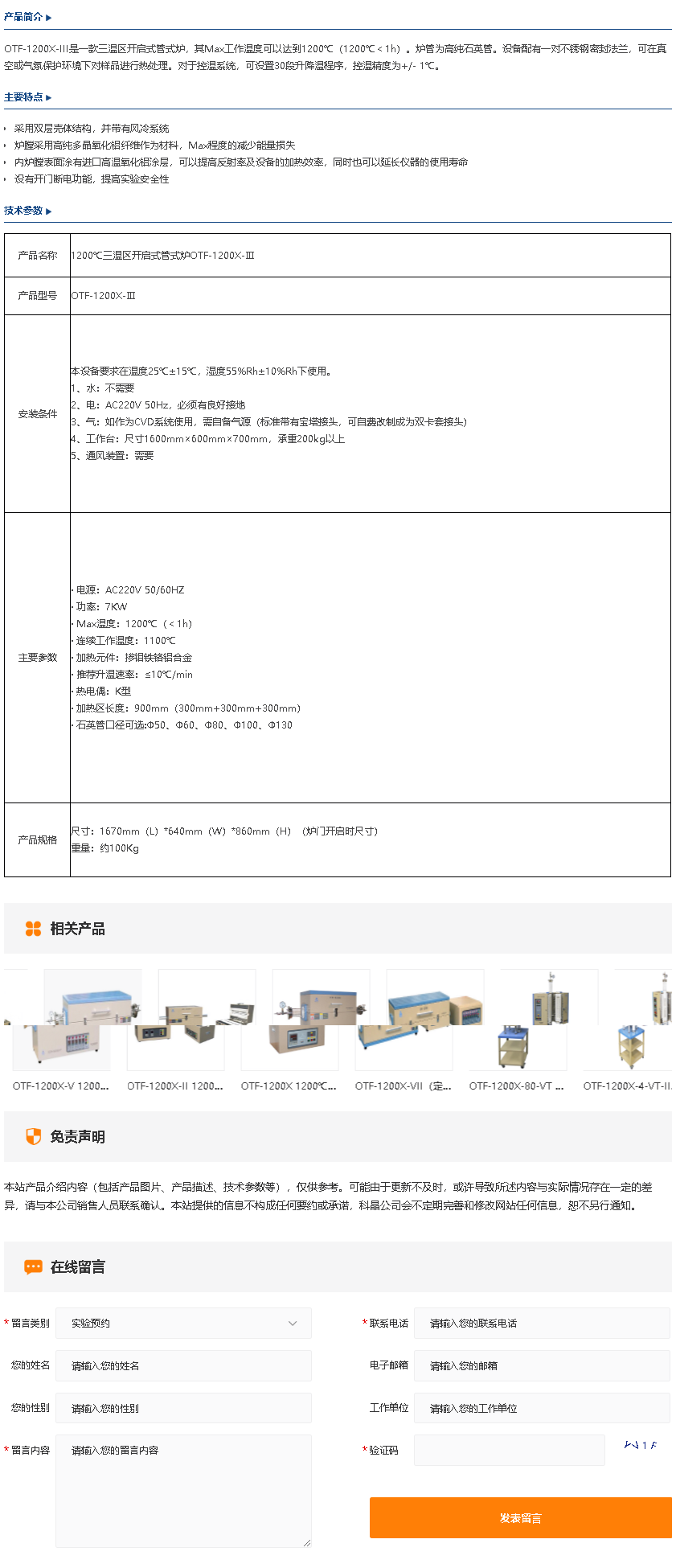 OTF-1200X-Ⅲ 1200℃三温区开启式管式炉