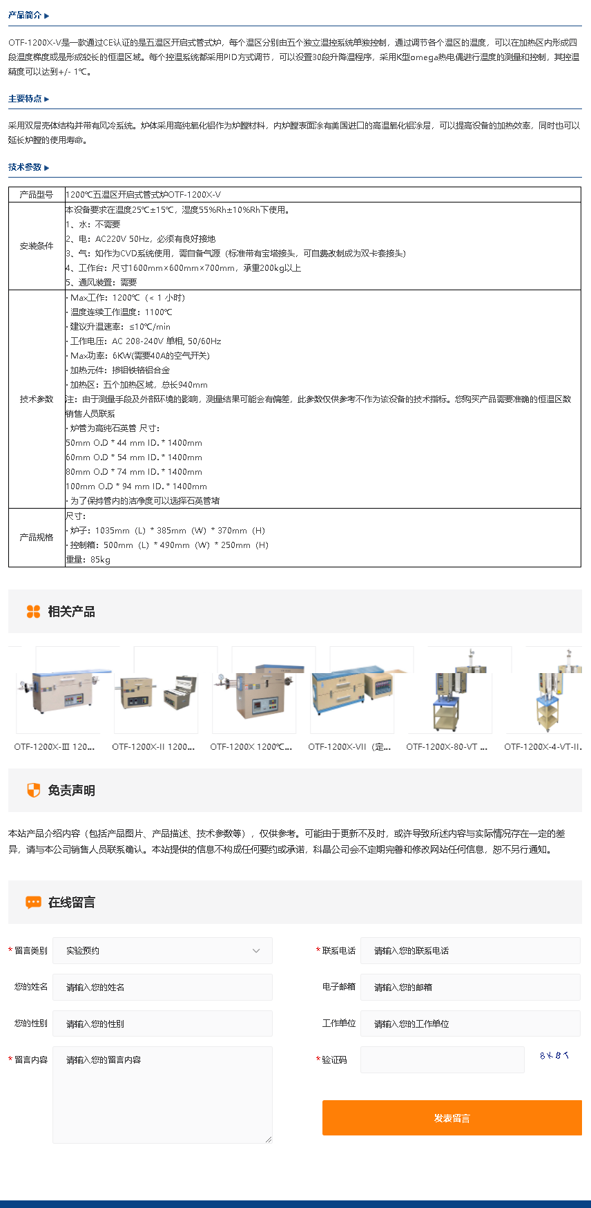 OTF-1200X-V 1200℃五温区开启式管式炉