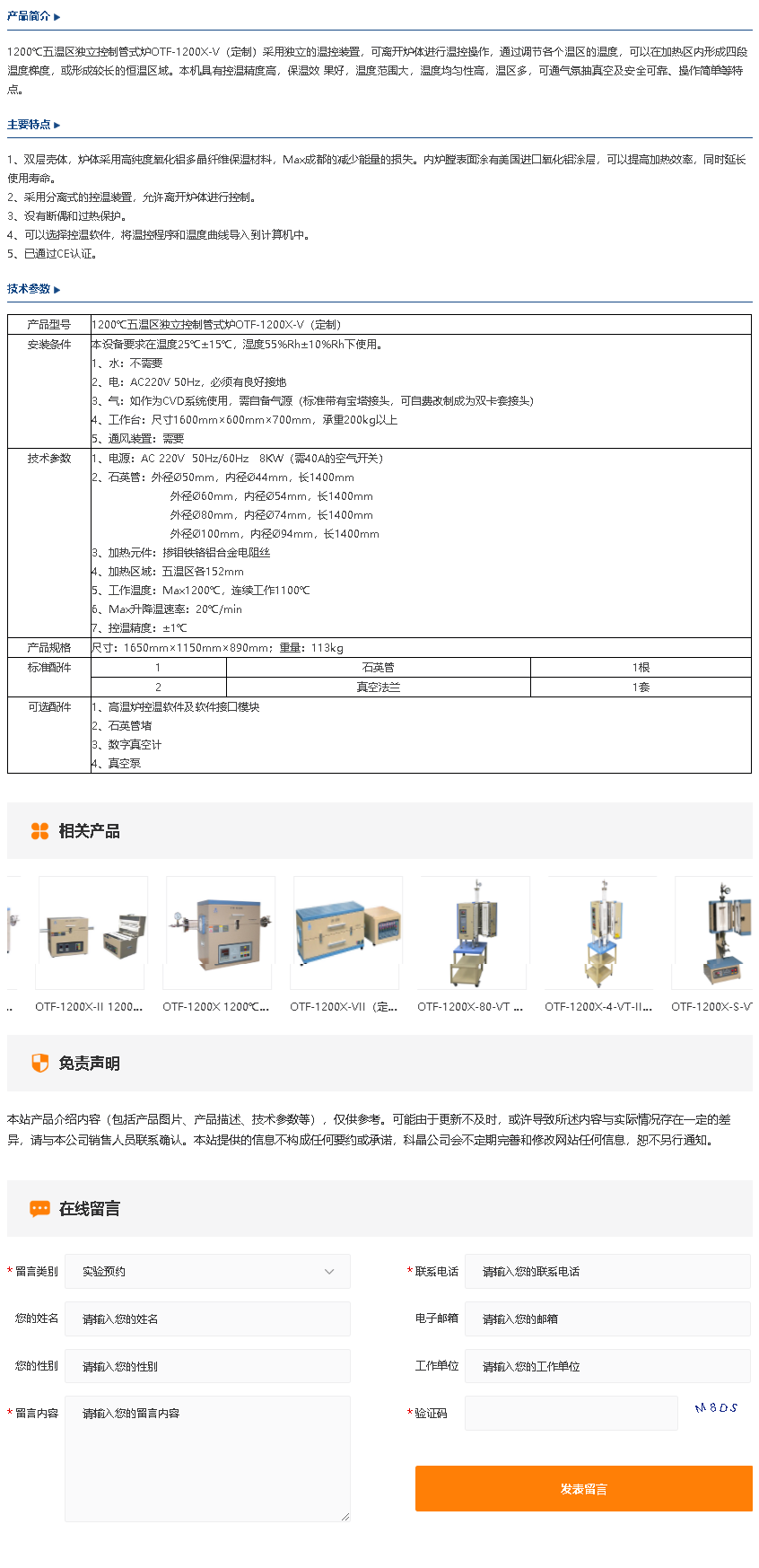 OTF-1200X-V(定制)1200℃五温区独立控制管式炉