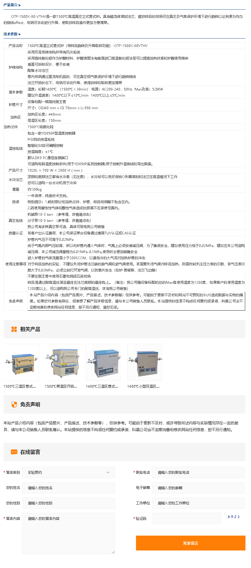 1300℃-1500℃管式炉