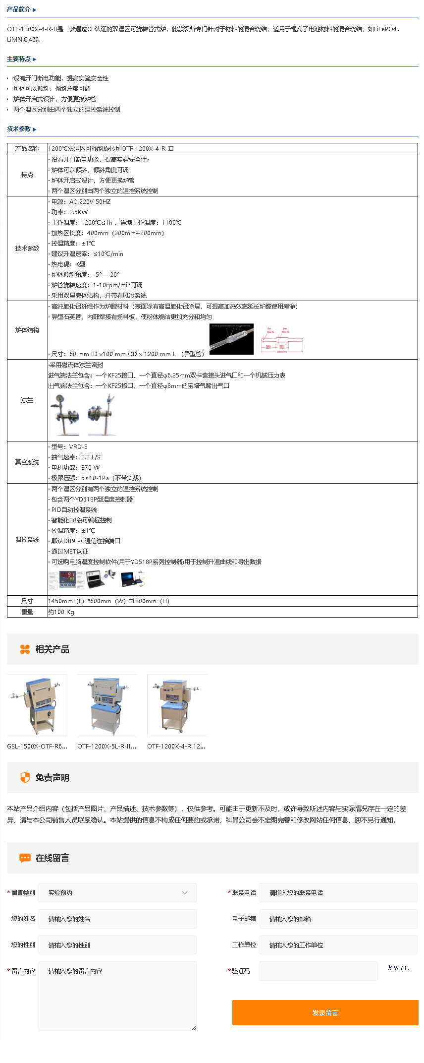 OTF-1200X-4-R-Ⅱ 1200℃双温区可倾斜旋转炉