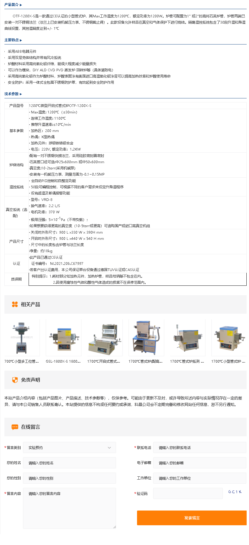 OTF-1200X-S 1200℃微型开启式管式炉