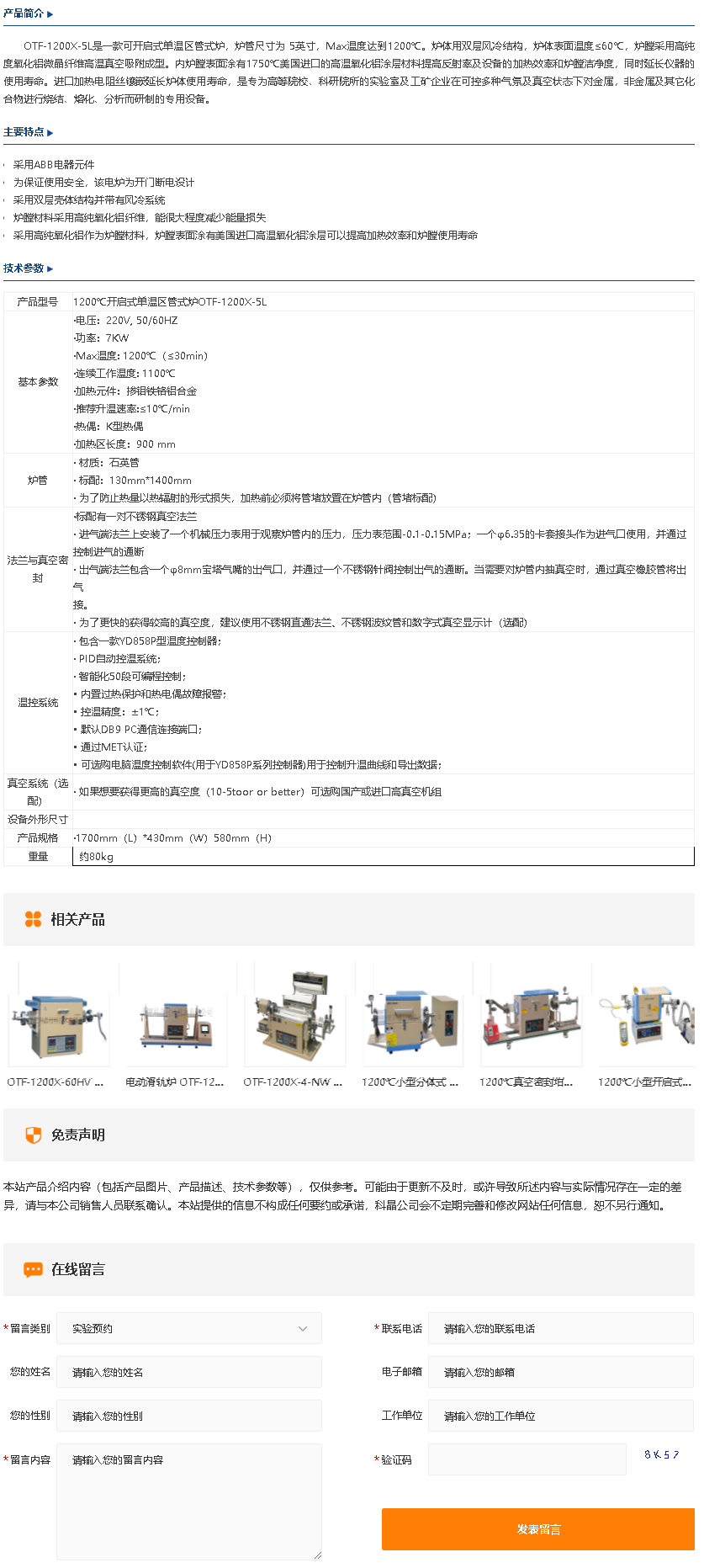 1200℃开启式单温区管式炉OTF-1200X-5L