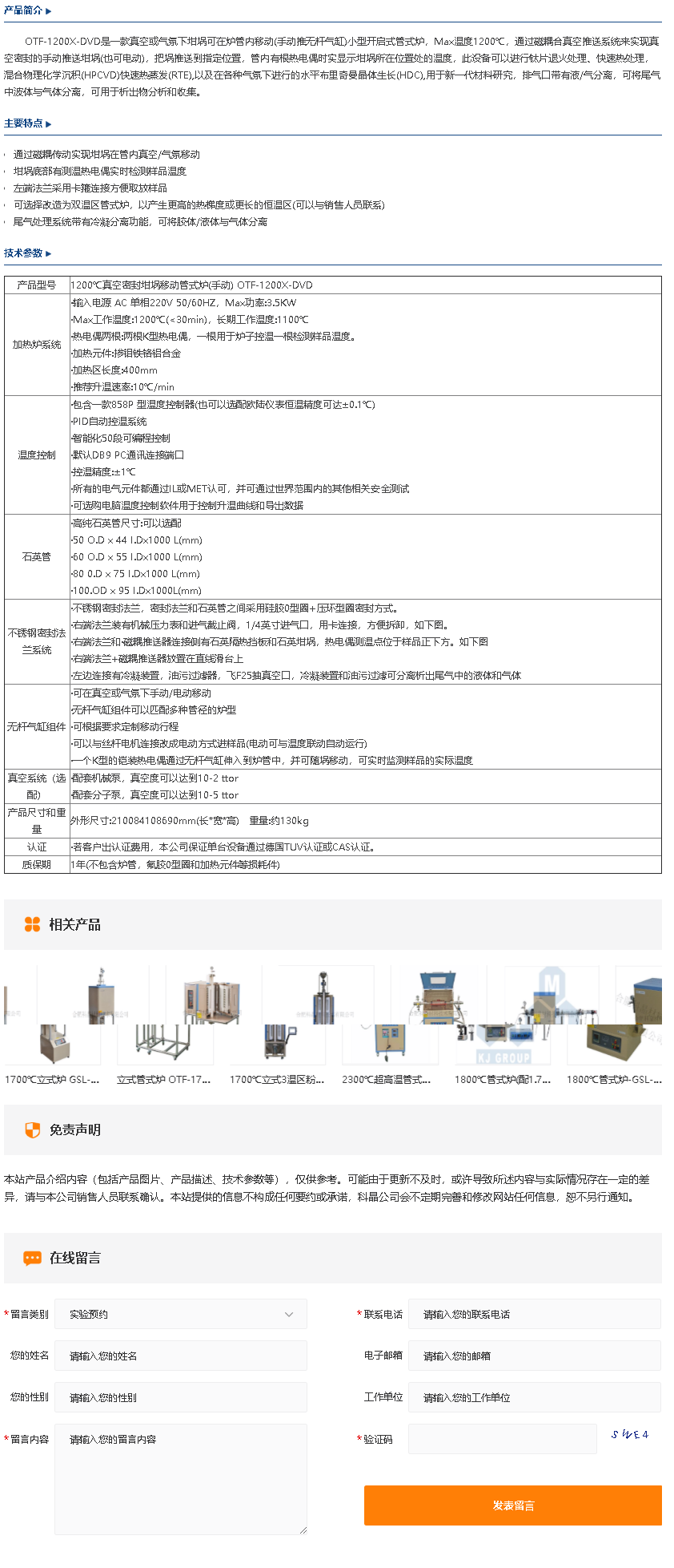 1200℃真空密封坩埚移动管式炉(手动) OTF-1200X-DVD