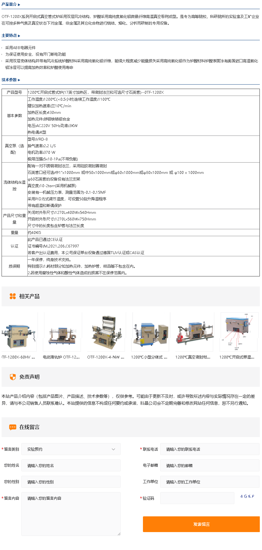 1200℃开启式管式炉(17英寸加热区,带密封法兰和可选尺寸石英管) 0TF-1200X