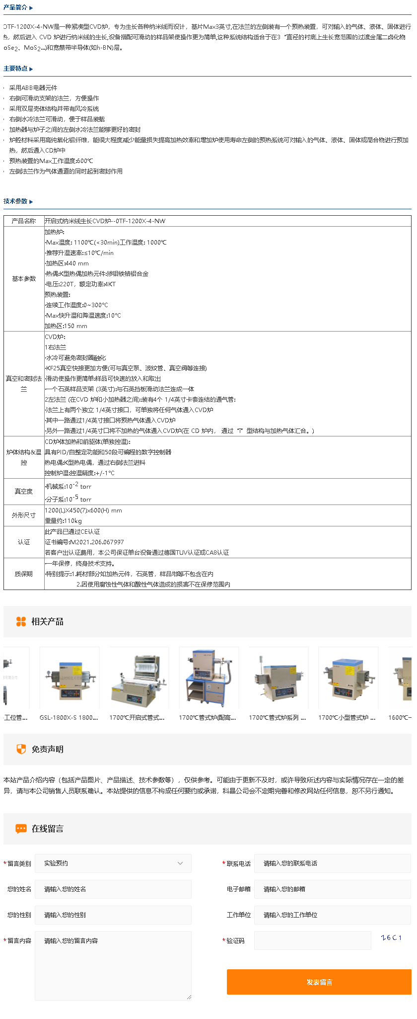 1200℃开启式单温区管式炉OTF-1200X-5L