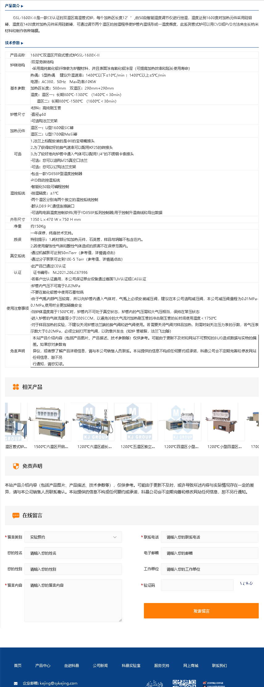 1100℃双温区大口径管式炉(6,8.5,11英寸管径)GSL-1100X-XX-S2