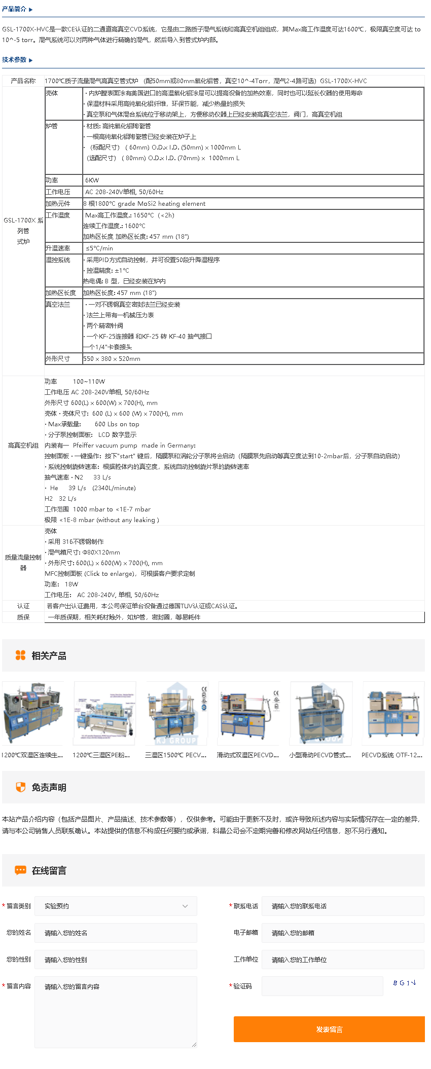 1700℃质子流量混气高真空管式炉 GSL-1700X-HVC