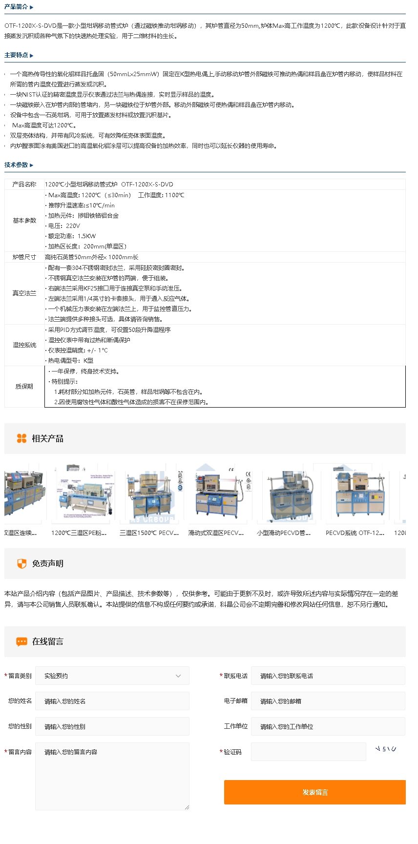 1200℃小型坩埚移动管式炉 OTF-1200X-S-DVD