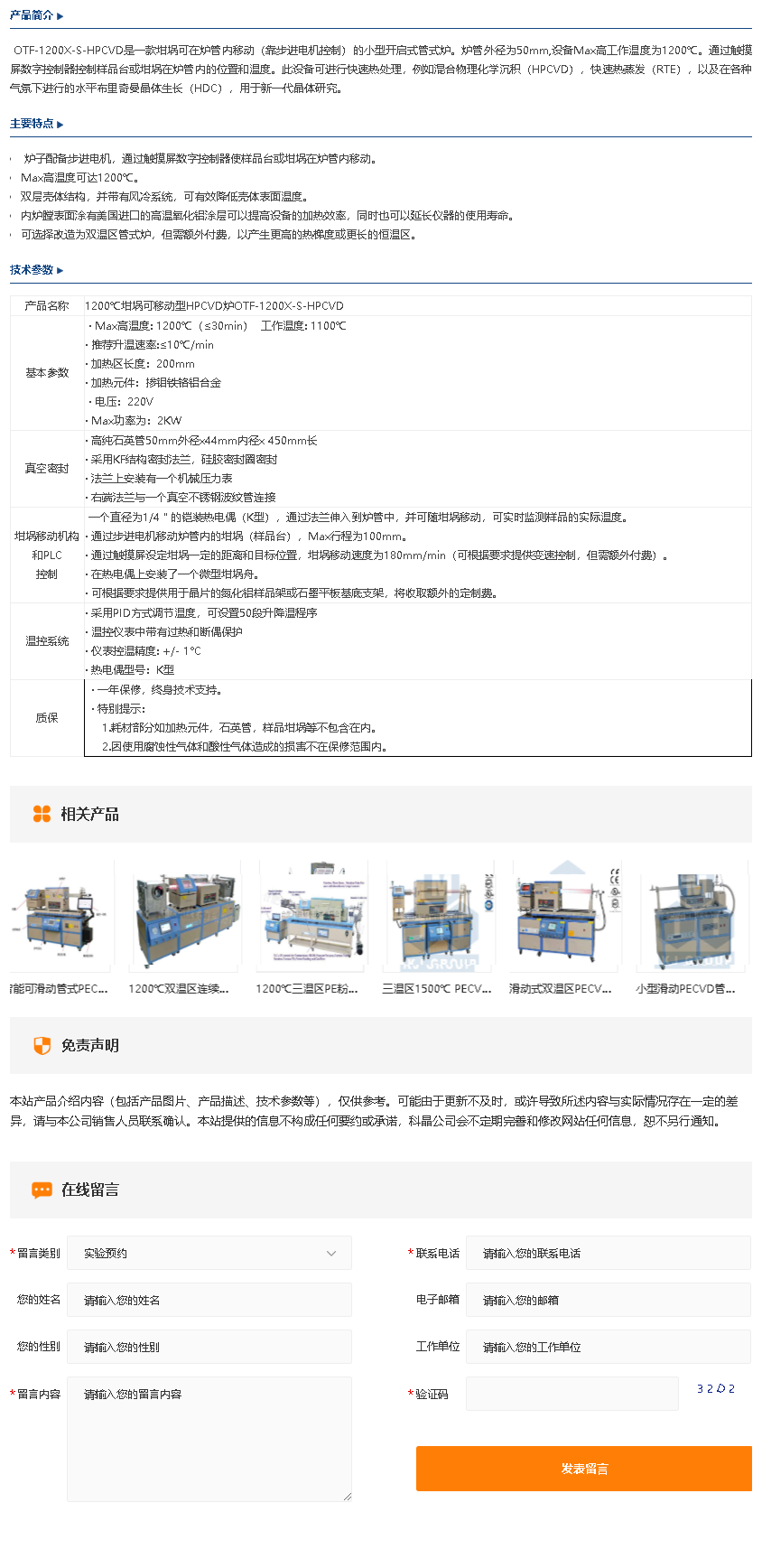 1200℃坩埚可移动型HPCVD炉OTF-1200X-S-HPCVD