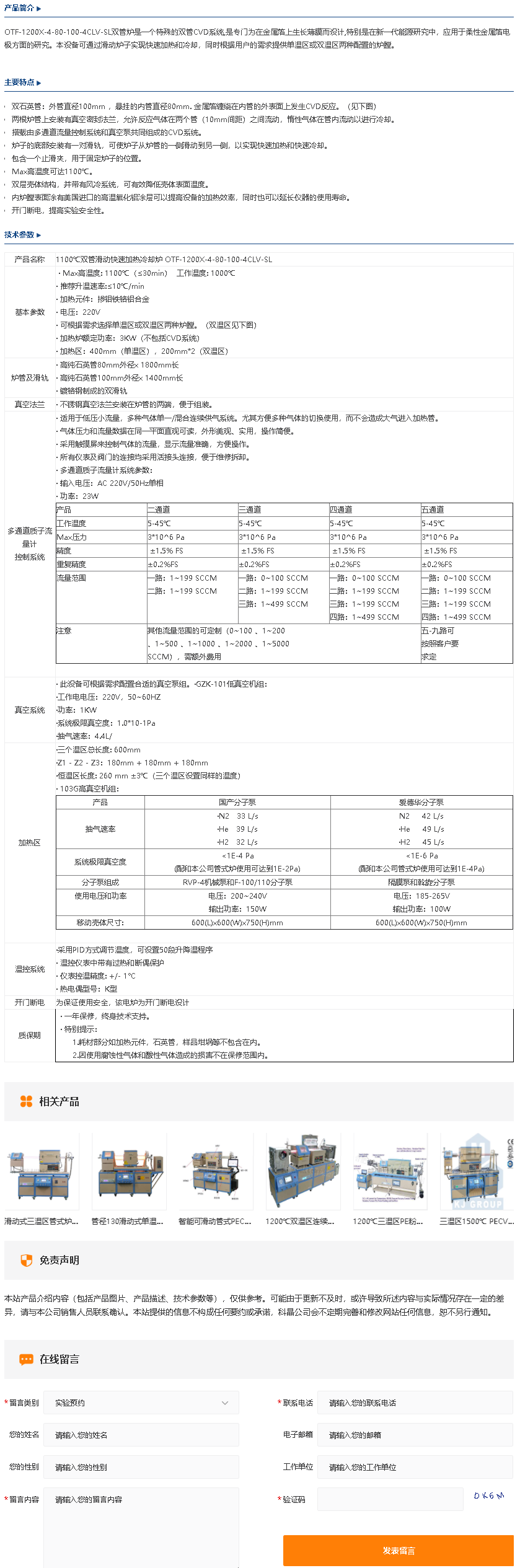 1100℃双管滑动快速加热冷却炉 OTF-1200X-4-80-100-4CLV-SL