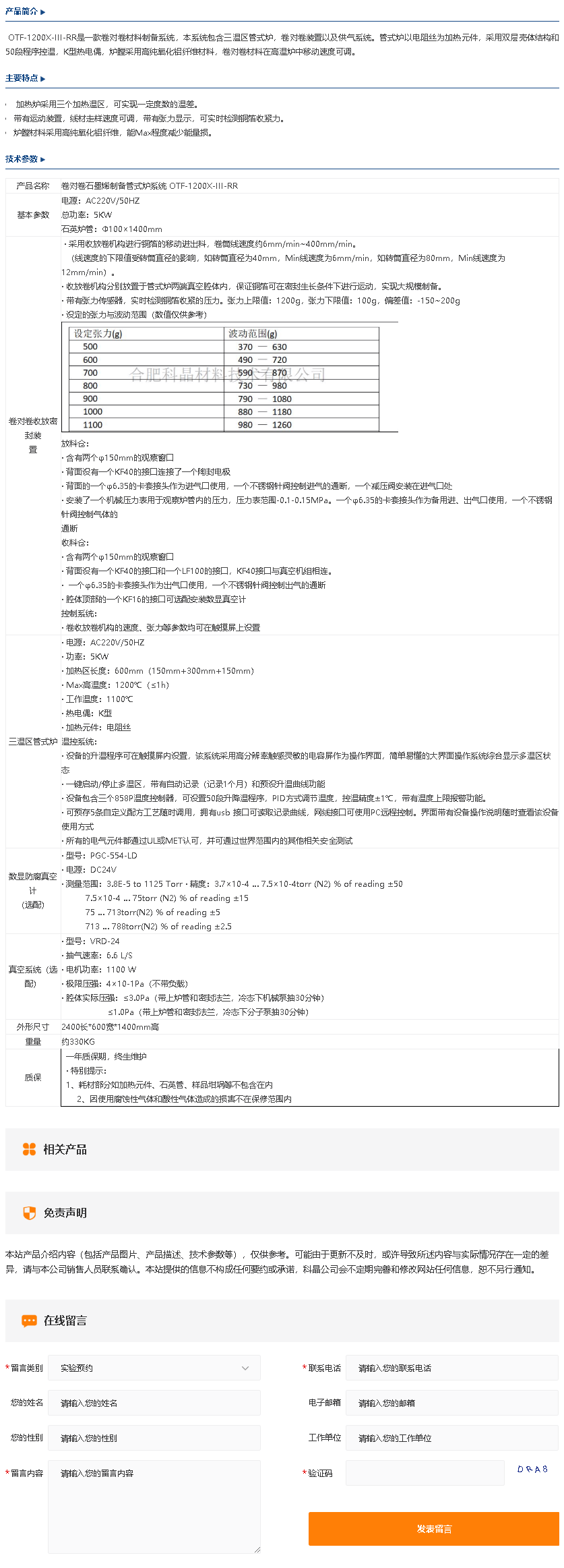 卷对卷石墨烯制备管式炉系统 OTF-1200X-III-RR