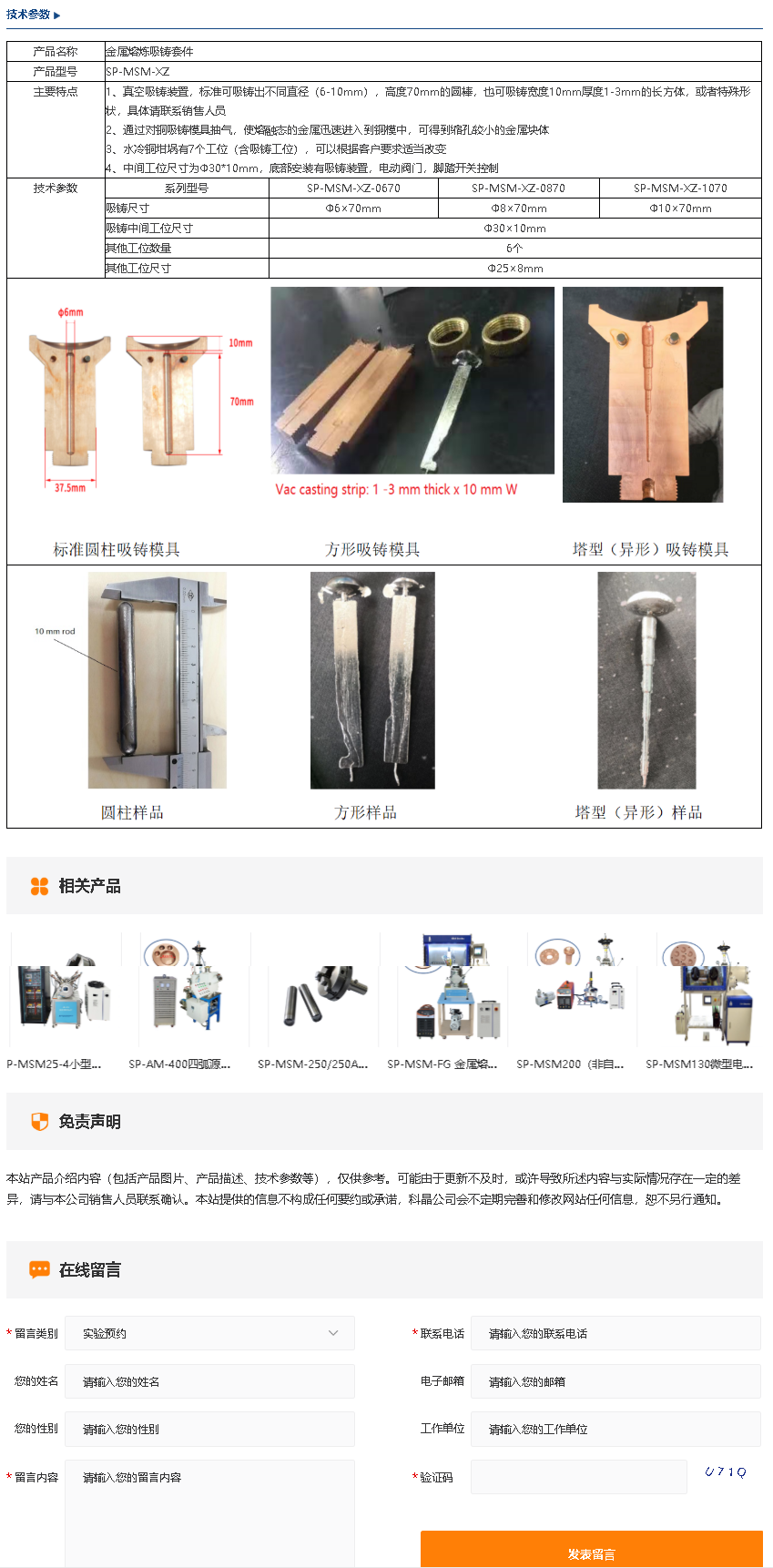 SP-MSM-XZ 金属熔炼吸铸套件