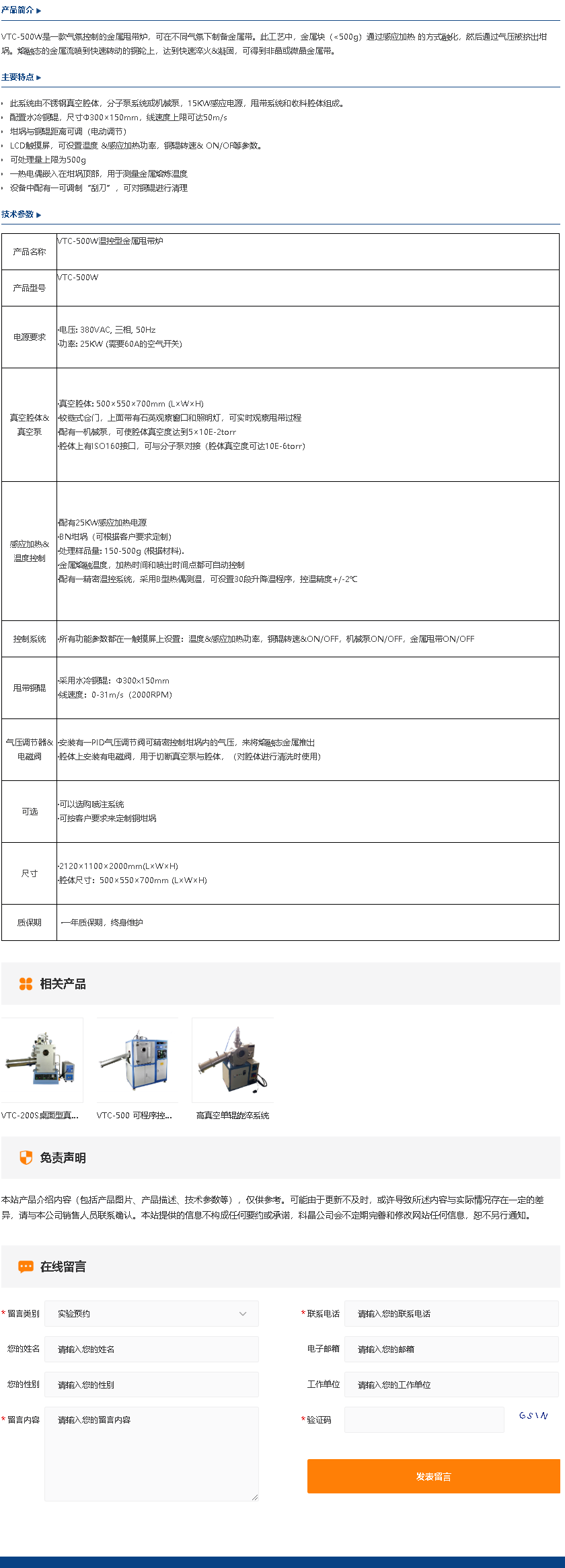 VTC-500 可程序控温金属甩带炉