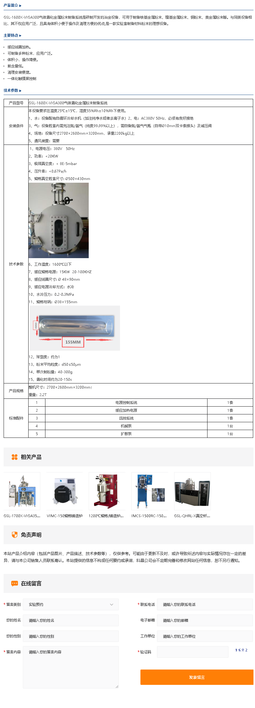 GSL-1600X-VIGA300气体雾化金属粉末制备系统