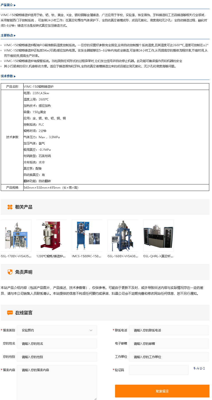 VIMC-150熔炼铸造炉