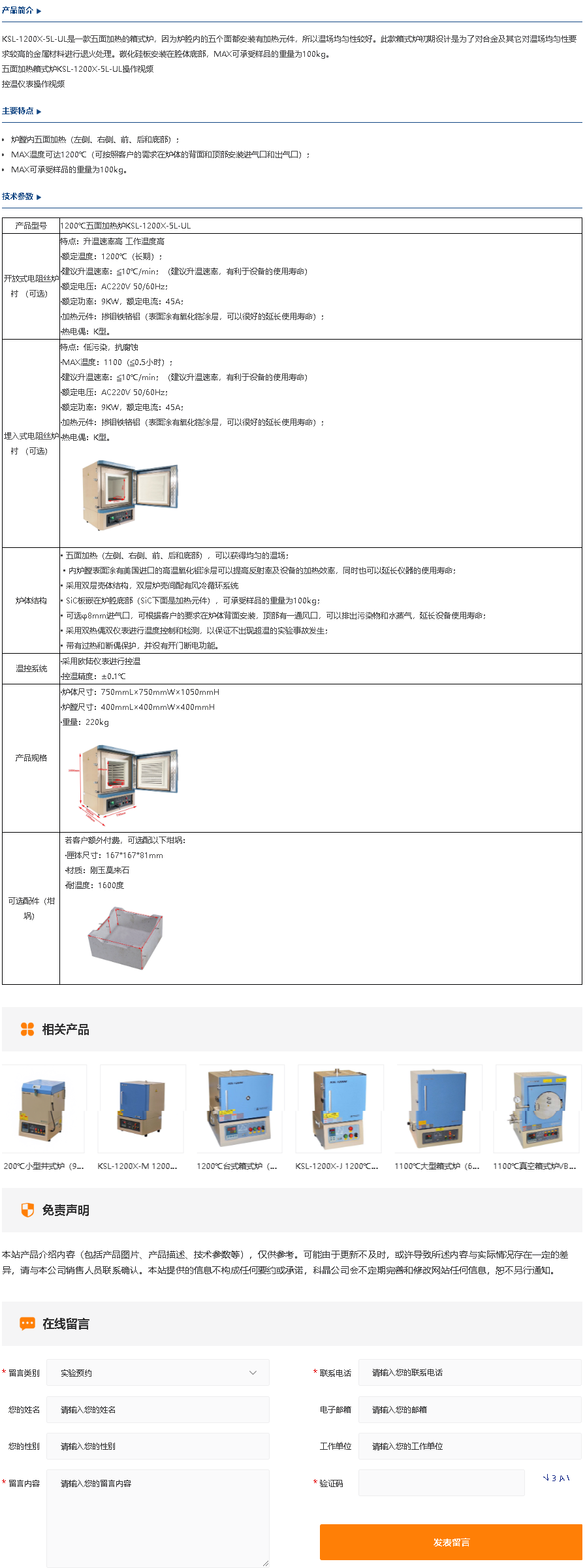 1200℃五面加热炉KSL-1200X-5L-UL