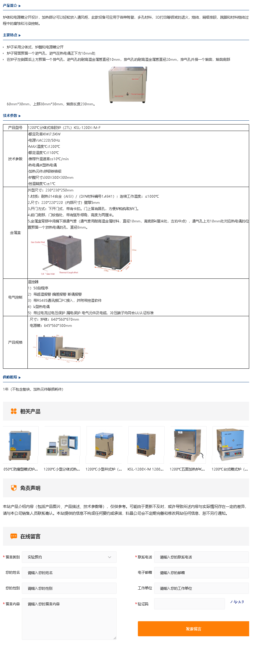 1200℃分体式排胶炉(27L)KSL-1200X-M-F