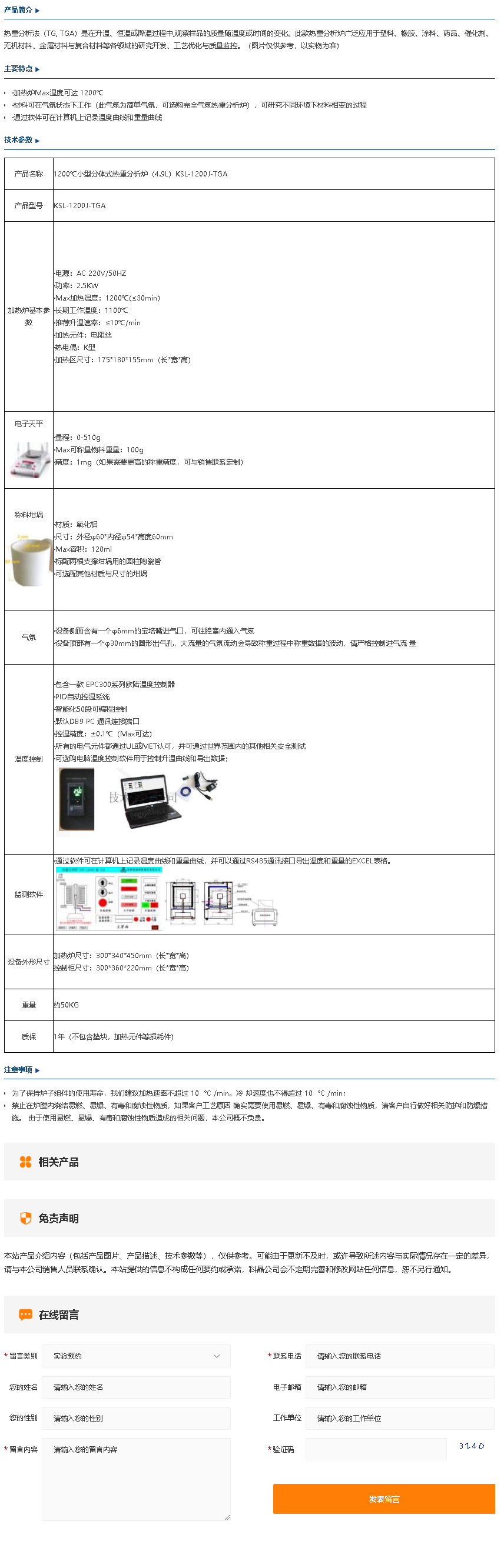 1200℃小型分体式热重分析炉(4.9L)KSL-1200J-TGA