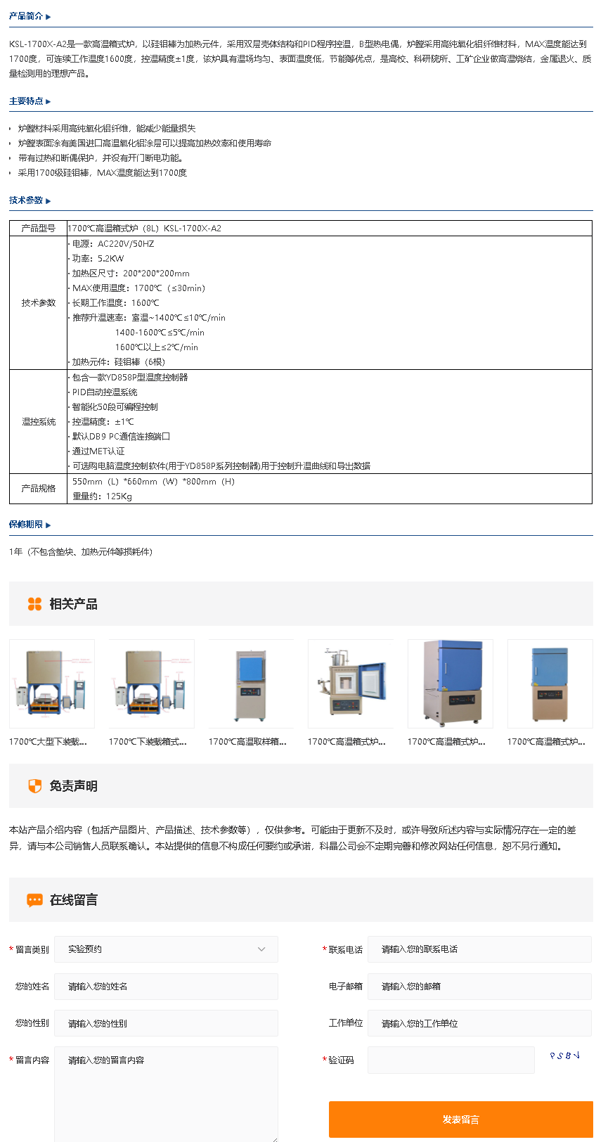 1700℃高温箱式炉(8L)KSL-1700X-A2