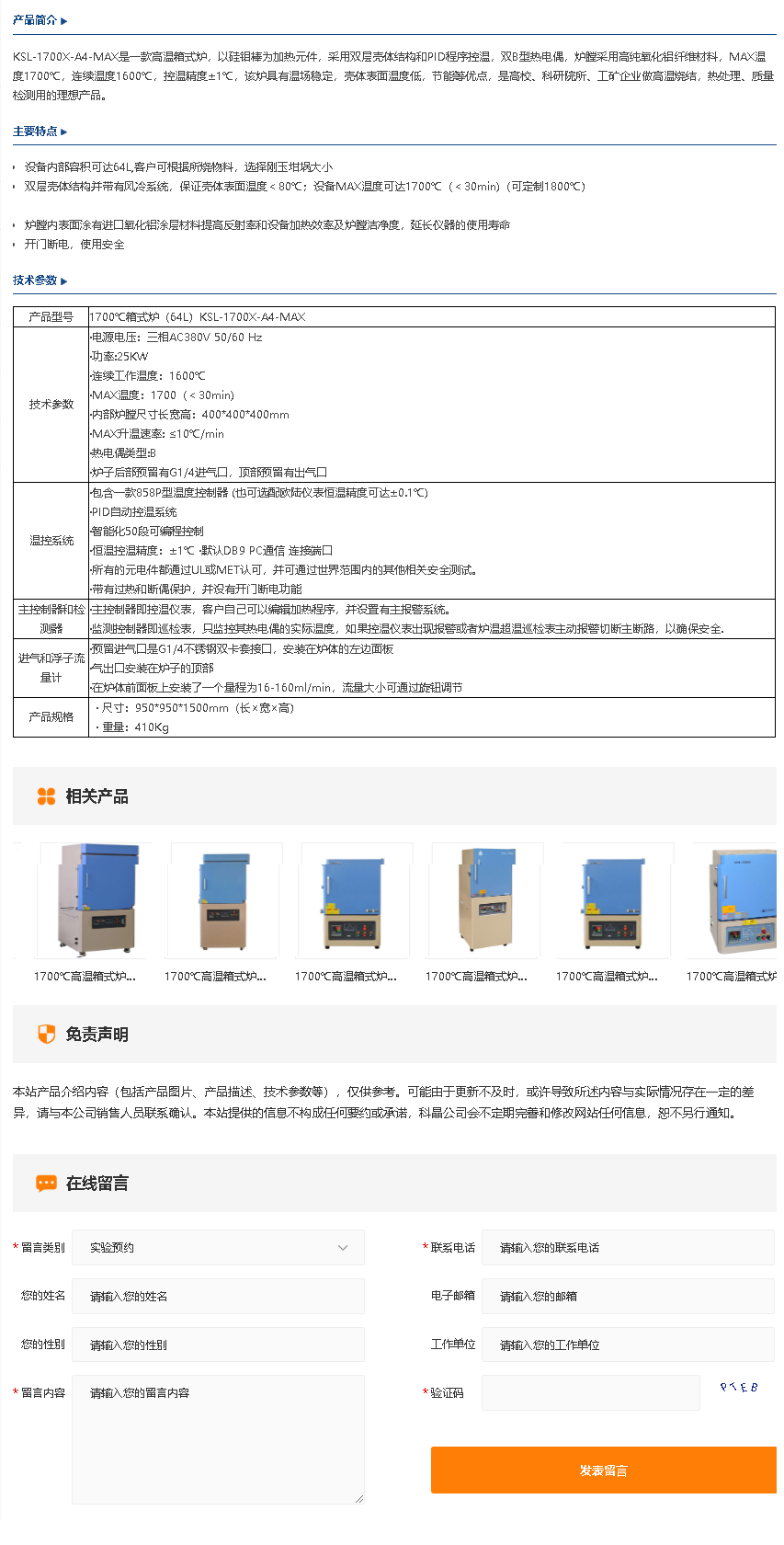 1700℃箱式炉(64L)KSL-1700X-A4-MAX