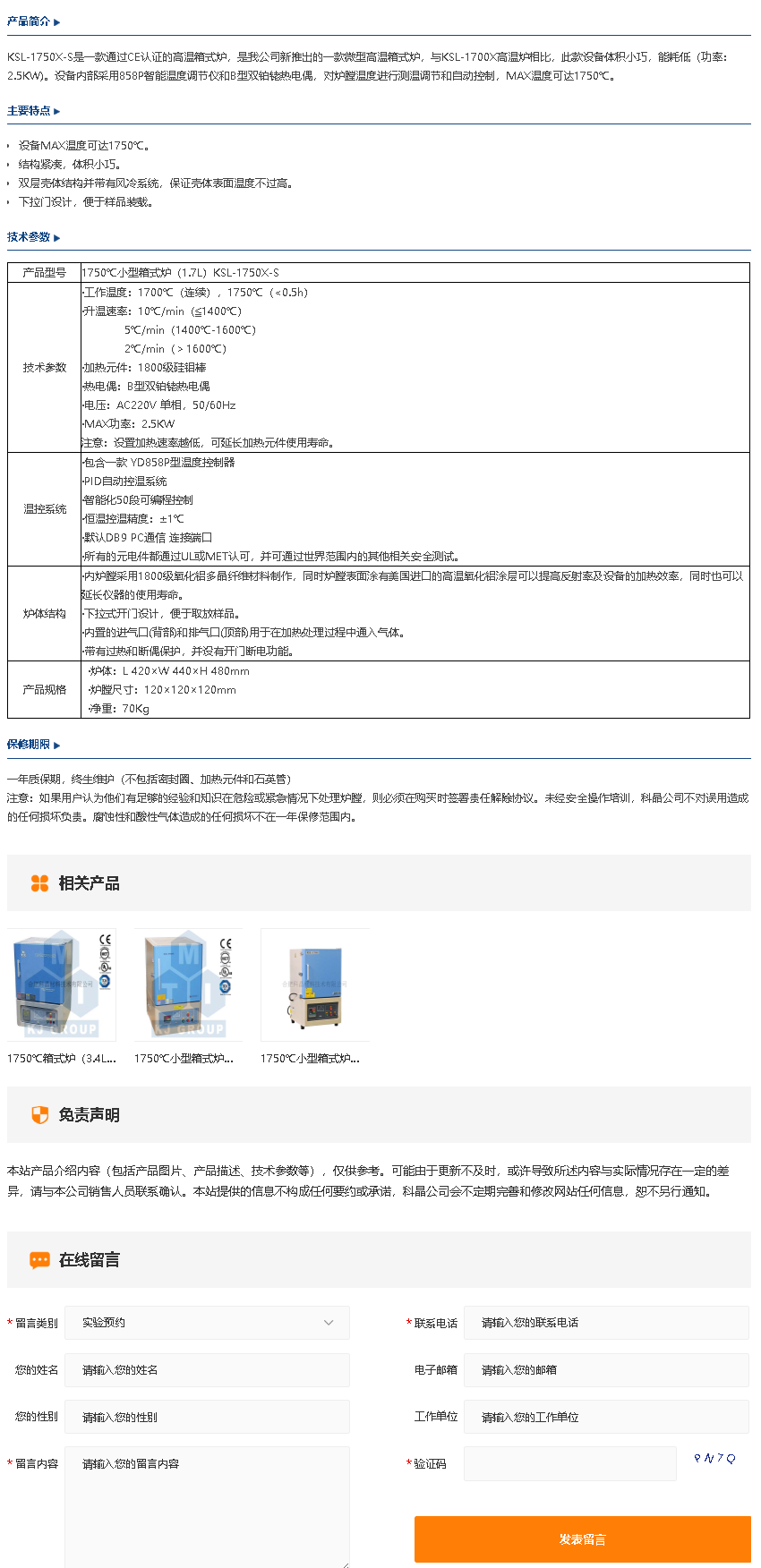 1750℃箱式炉(3.4L)KSL-1750X-A1-K-EU