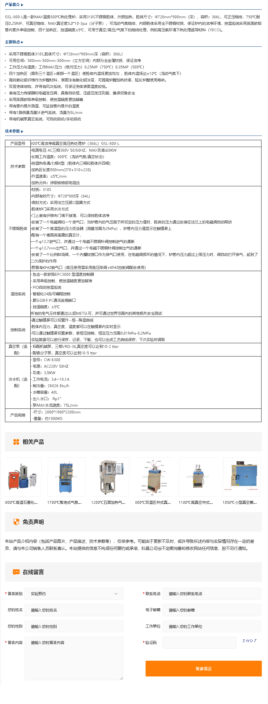 800℃高洁净高真空高压热处理炉(366L)GSL-800-L