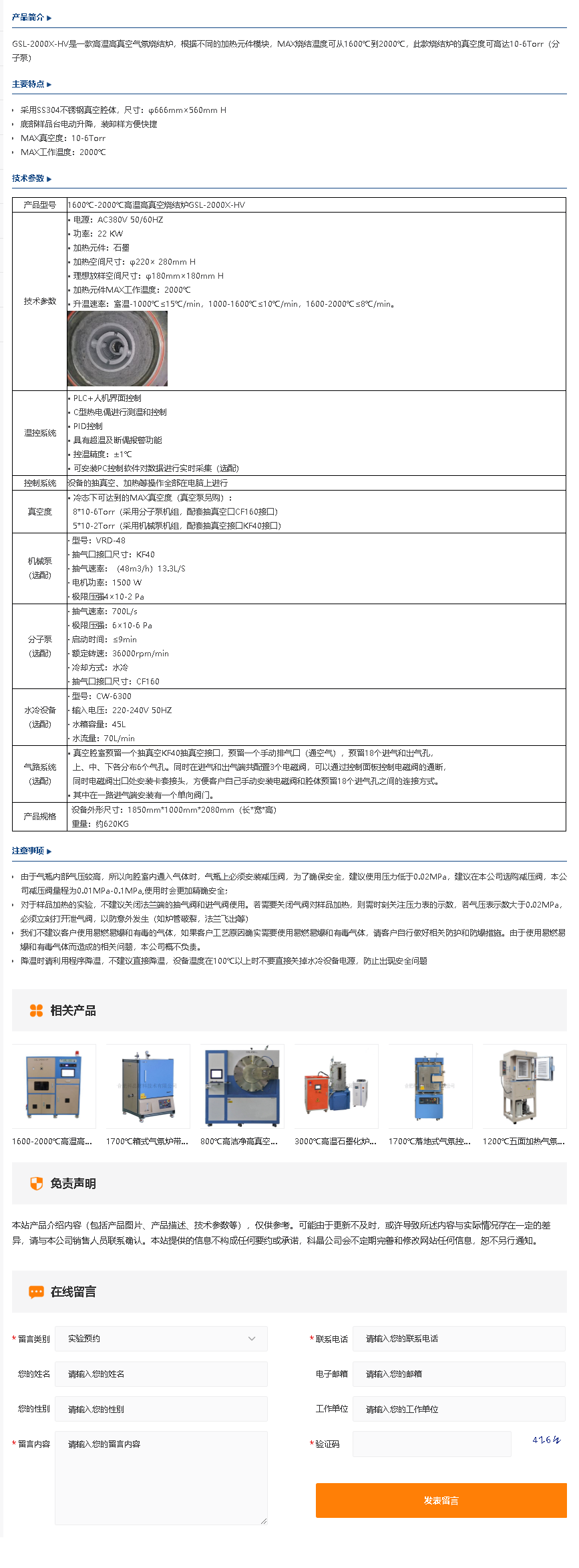 1600-2000℃高温高真空烧结炉GSL-2000X-HV