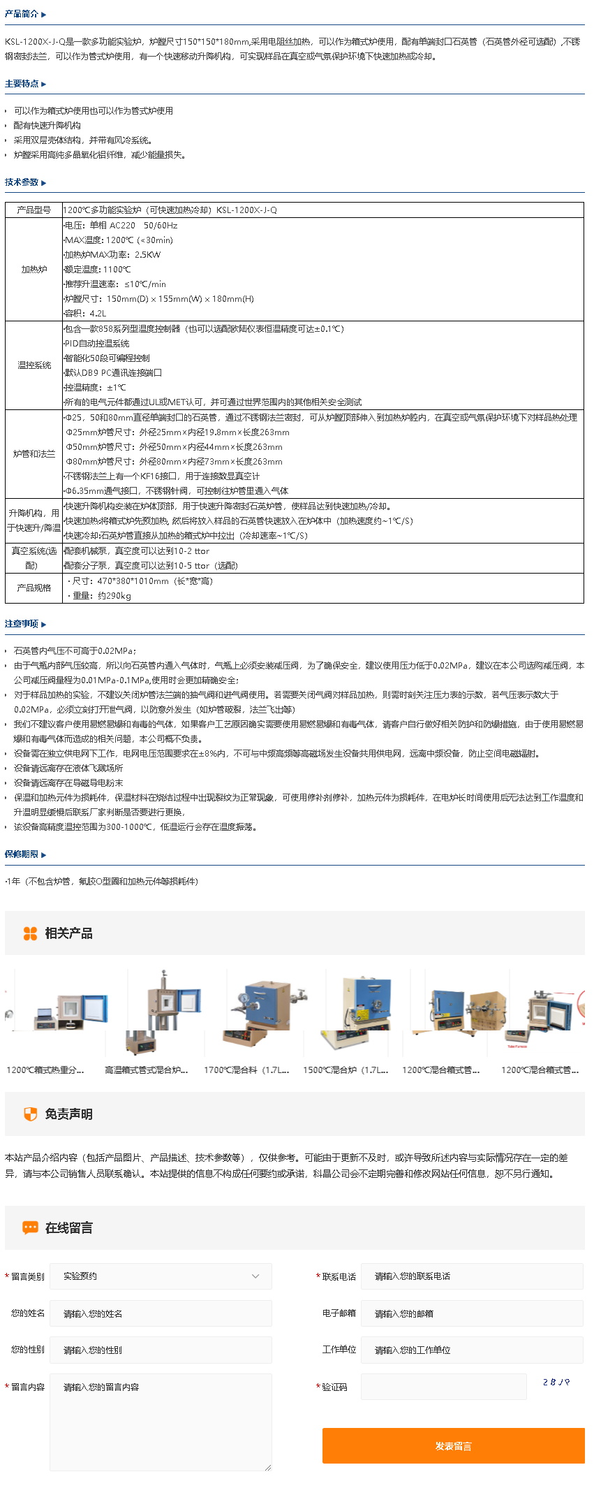 1200℃多功能实验炉(可快速加热冷却)KSL-1200X-J-Q