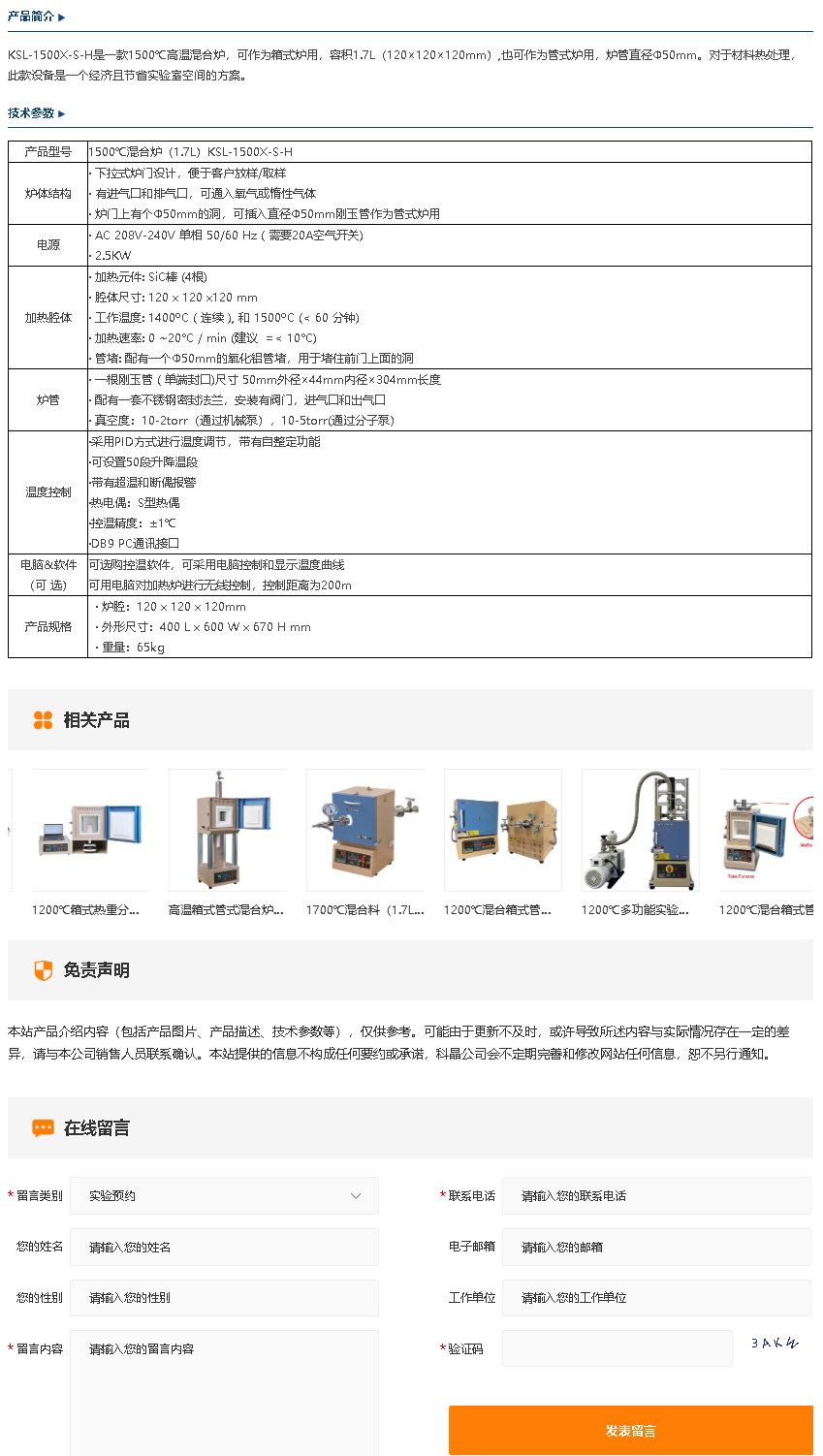 1500℃混合炉(1.7L)KSL-1500X-S-H