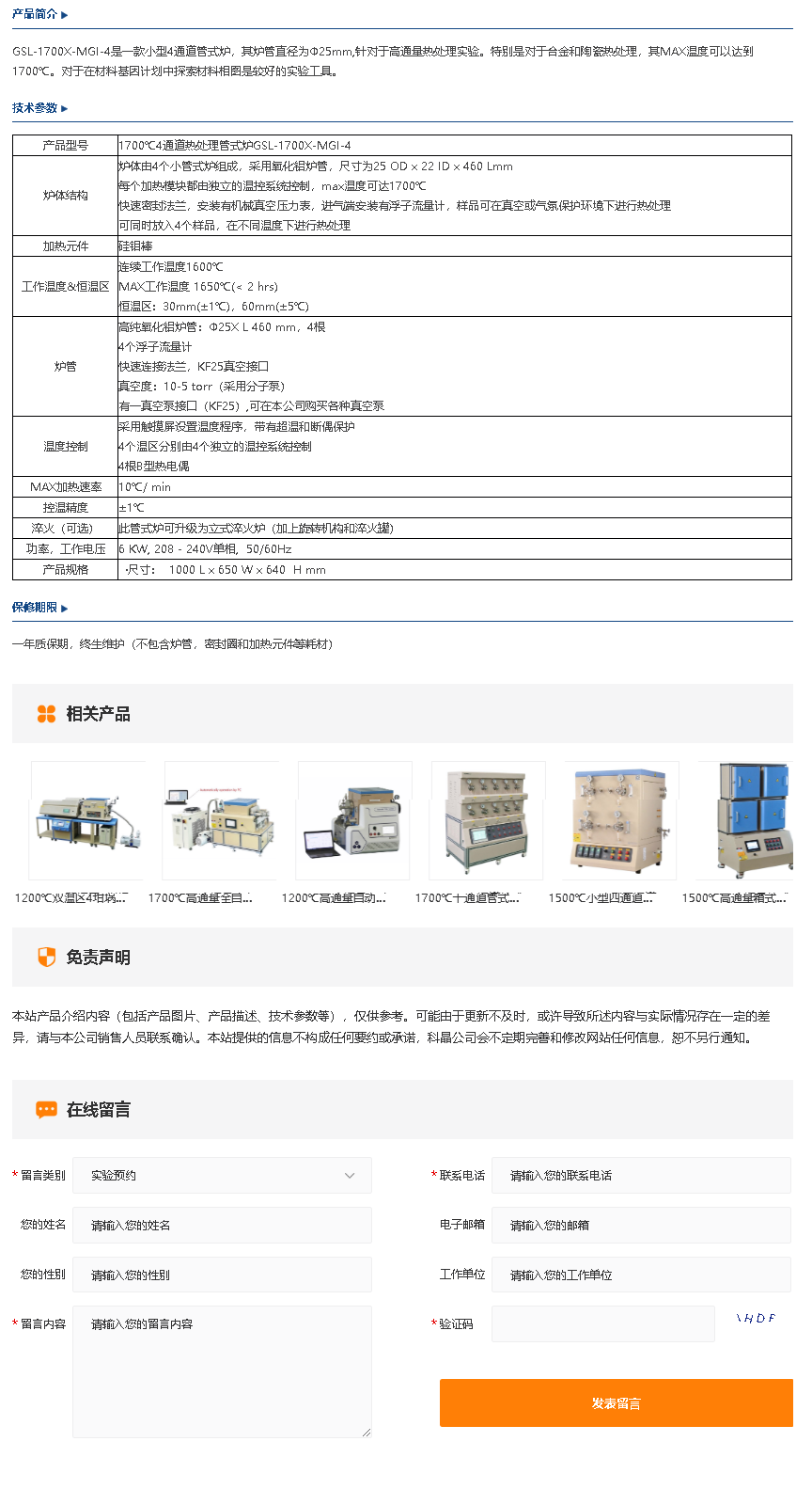 1700℃4通道热处理管式炉GSL-1700X-MGI-4