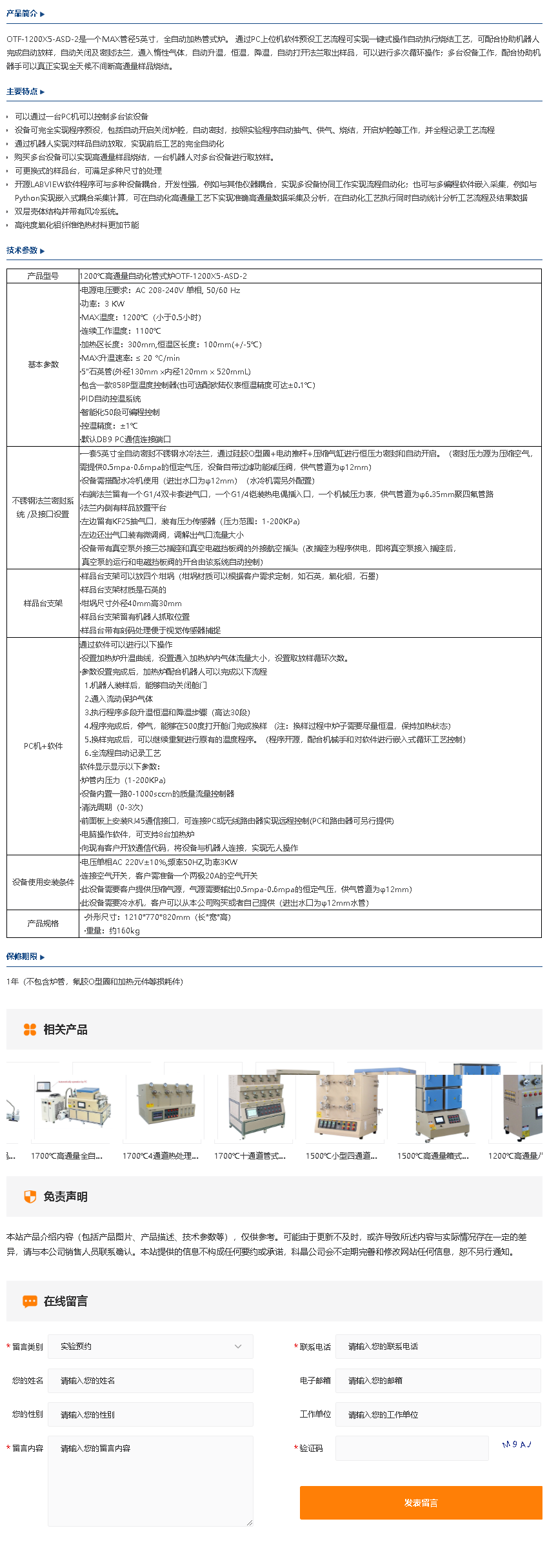 1200℃高通量自动化管式炉OTF-1200X5-ASD-2