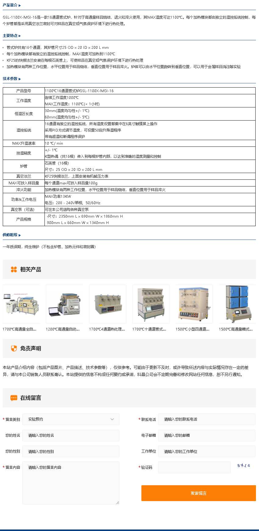 1100℃16通道管式炉GSL-1100X-MGI-16